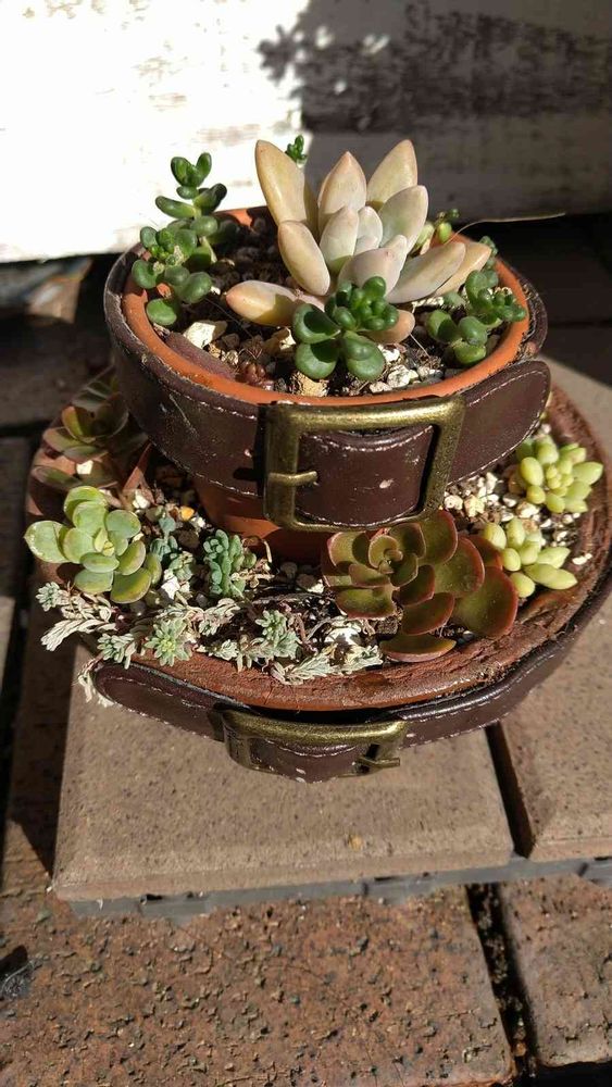 ベルトがアクセントのカッコいい2段鉢🪴✨