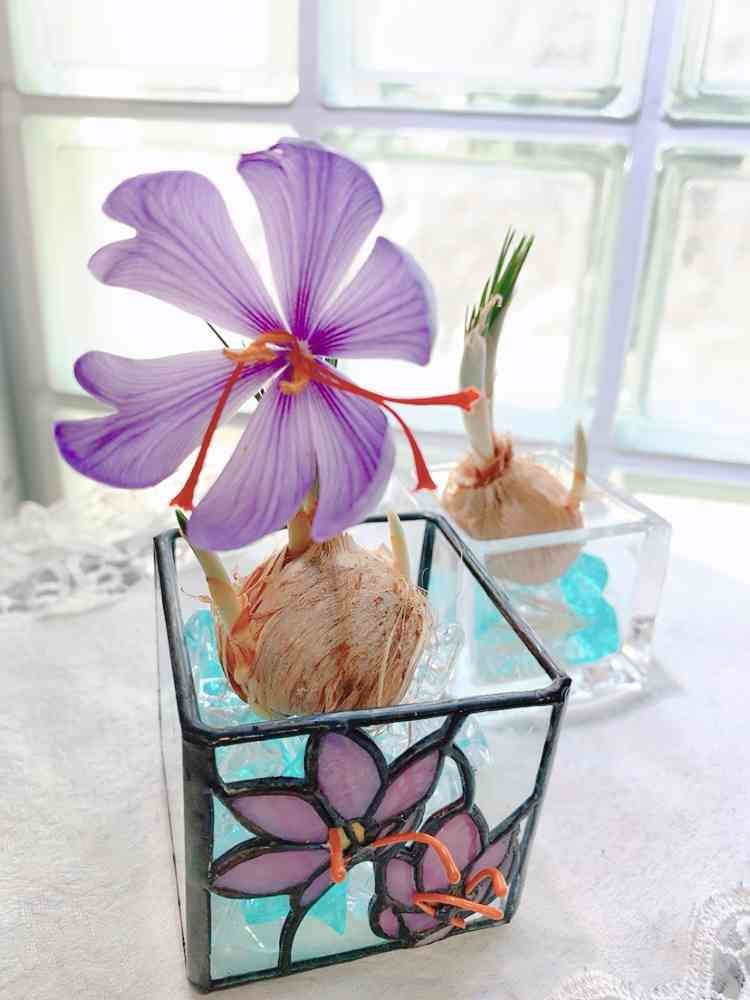 サフランもステンドグラスの入れ物も素敵ですね😃💕💜💙💓