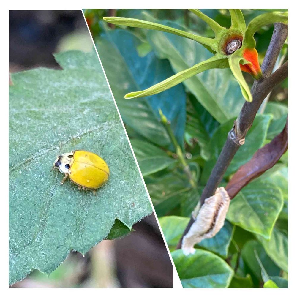 クチナシの木にチョウセンカマキリの卵鞘(ランショウ)