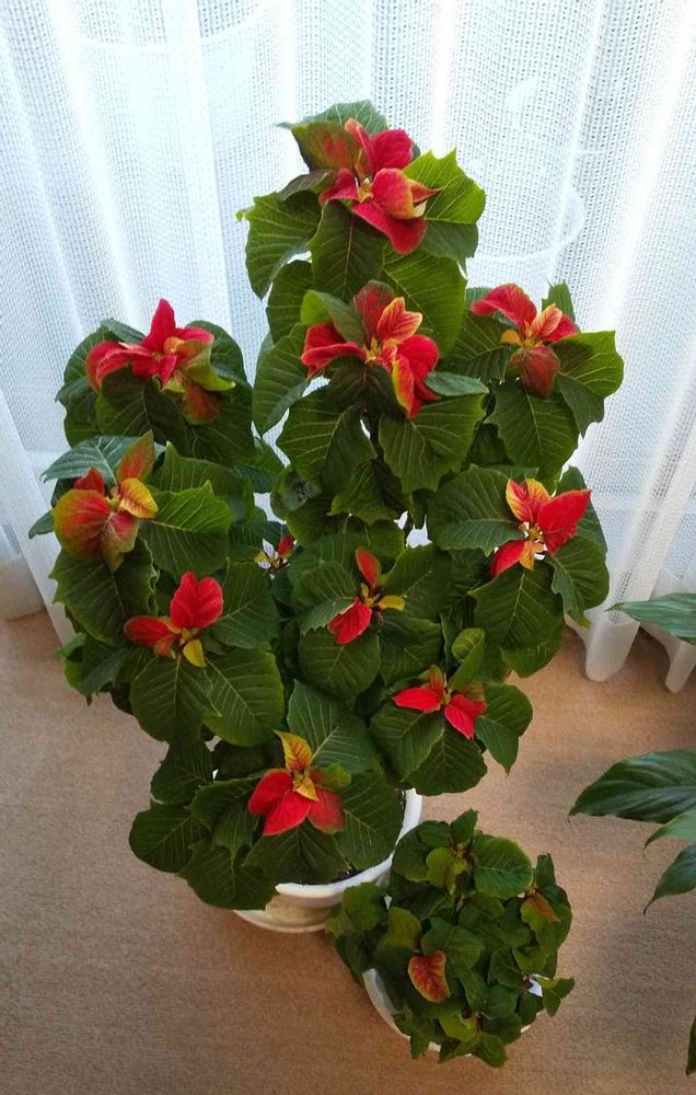 大きい方は3年目で、去年初めて短日処理に挑戦して成功したので今年も挑戦中です☺️だいぶ赤くなって来てクリスマスに間に合いそうです~😆💕💕