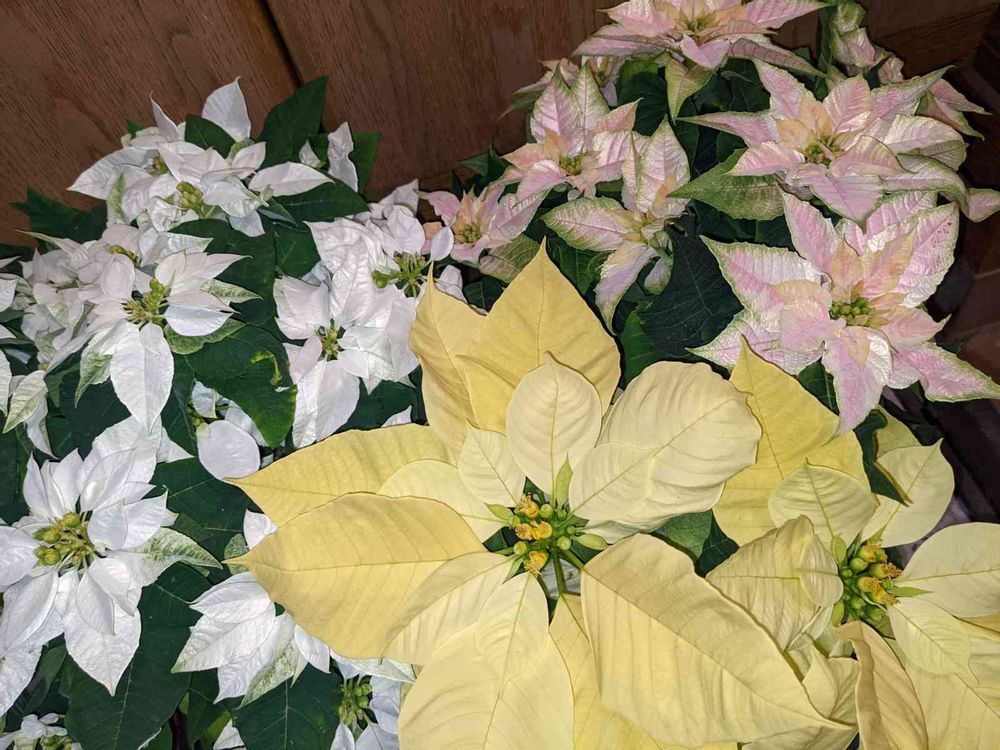 ポインセチア、白と迷ったけどあたらしく見かけるようになったイエローほどでないクリームイエロー的な色合い、ハマった(´,,•ω•,,)♡