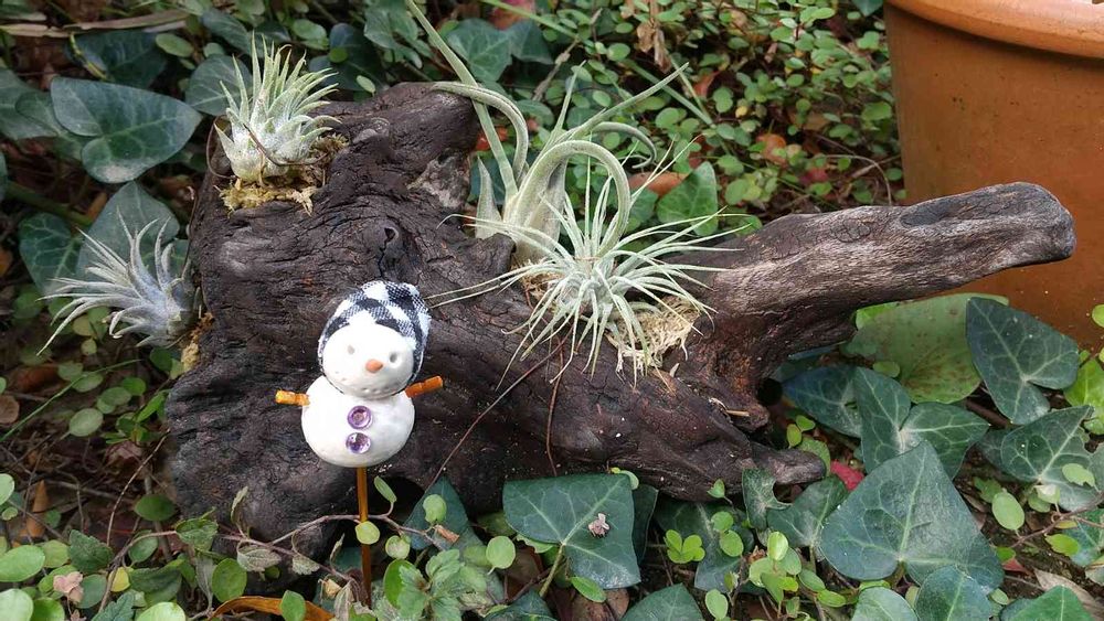 よっしー産流木の七福神が夏の暑さでカリカリになってしまったので、エアープランツのすみかにしました💚