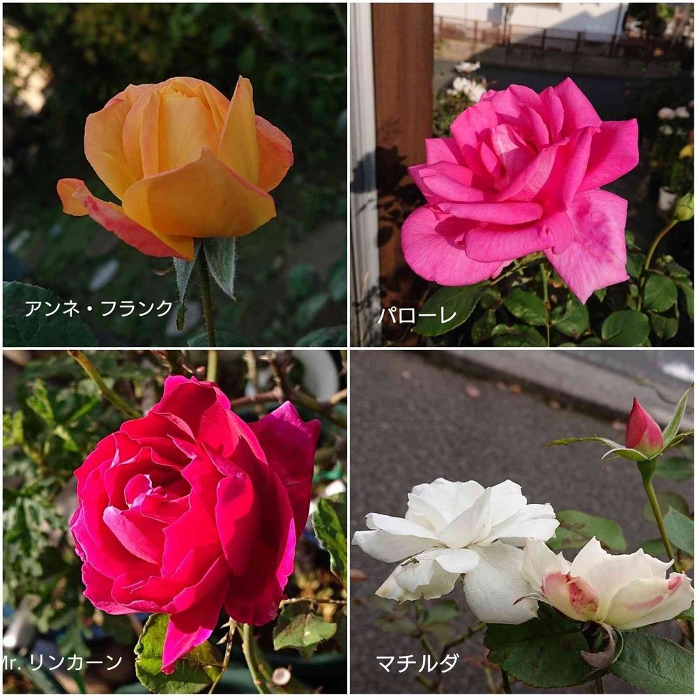 今週の薔薇🏵️さんを並べてみました。秋の薔薇は個性が強く出ますね。とても良いと思います❣️。