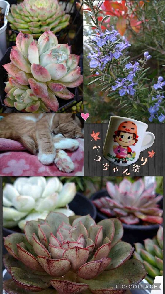 多肉さんpicに可愛いピンクの肉球さん💗が🐈