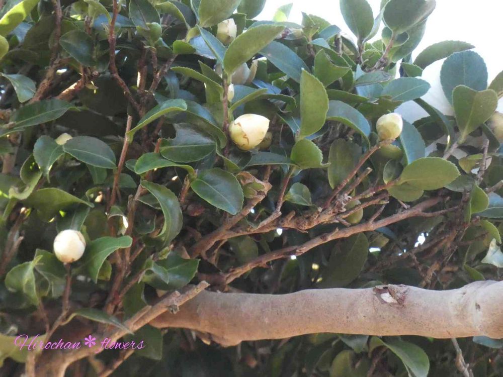 山茶花の大木を 見上げると、たくさんの小さな蕾が付いています。