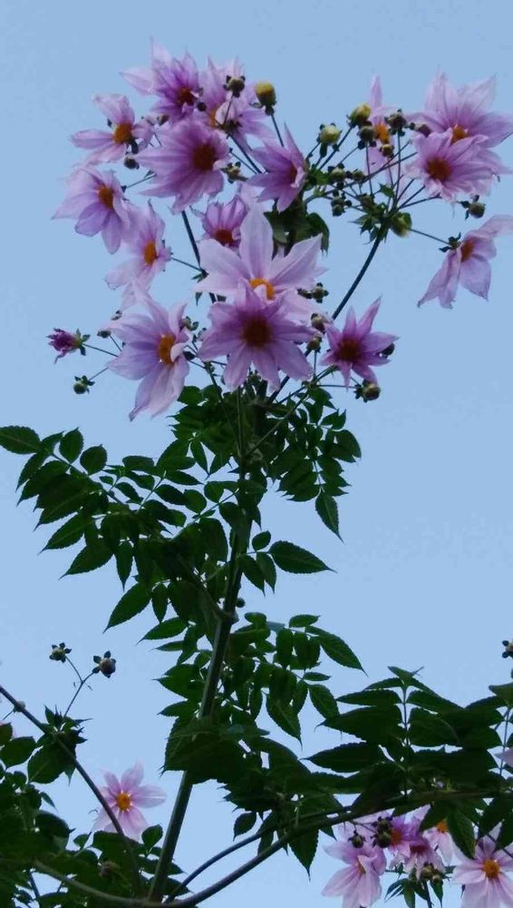 青空に皇帝ダリアさんお似合いですよ🌸🌿