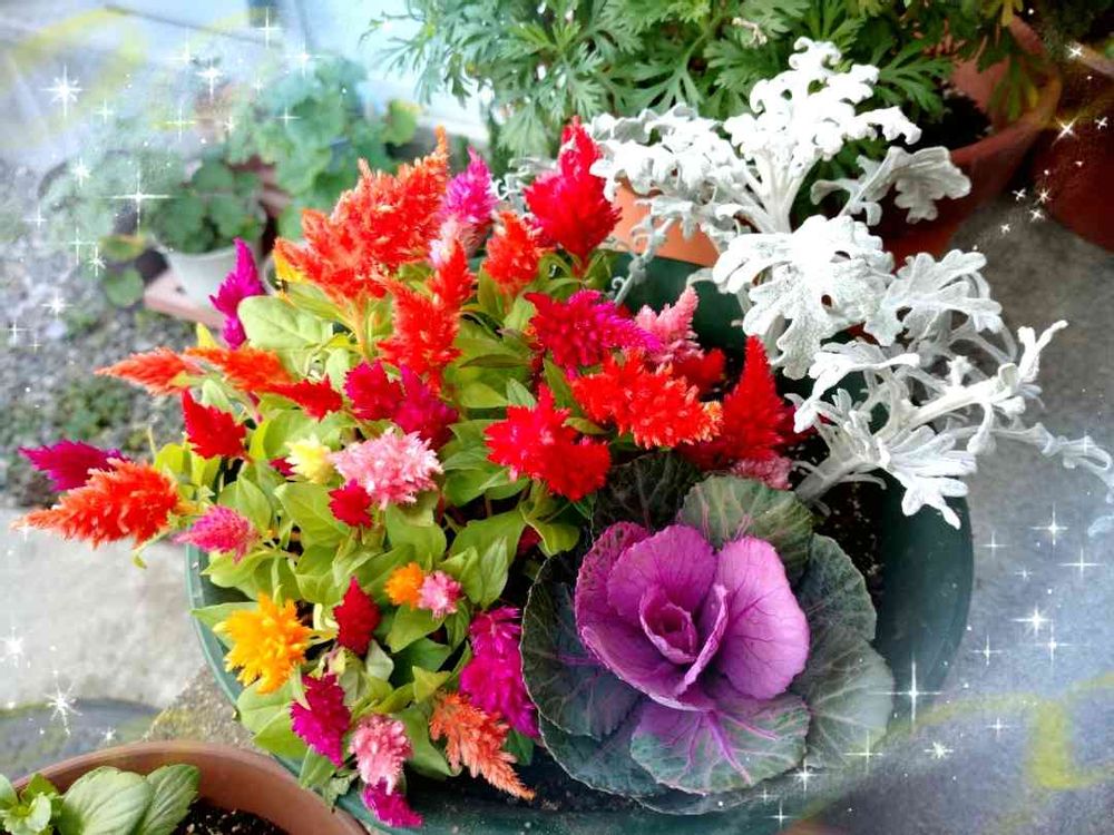 玄関,ケイトウ,葉牡丹の投稿画像