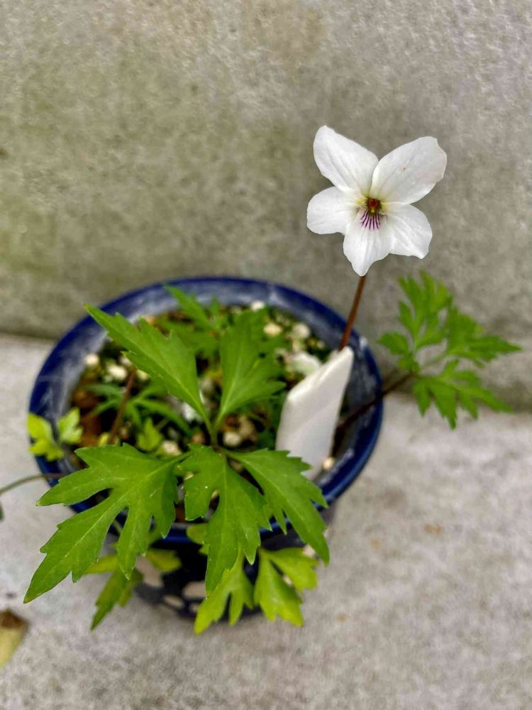 チドリソウを植えていた鉢に居座っちゃったヒゴスミレ。😅