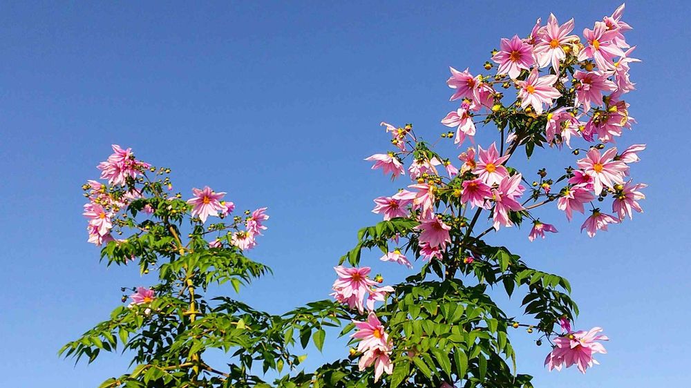 ホント良いお天気です!コダチダリアと言うんですね〜綺麗です!「👶👭誰や」