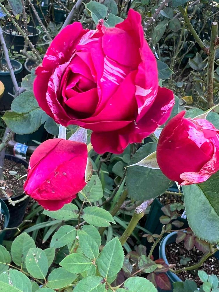 赤白の丸弁咲きのブッシュタイプ🥀