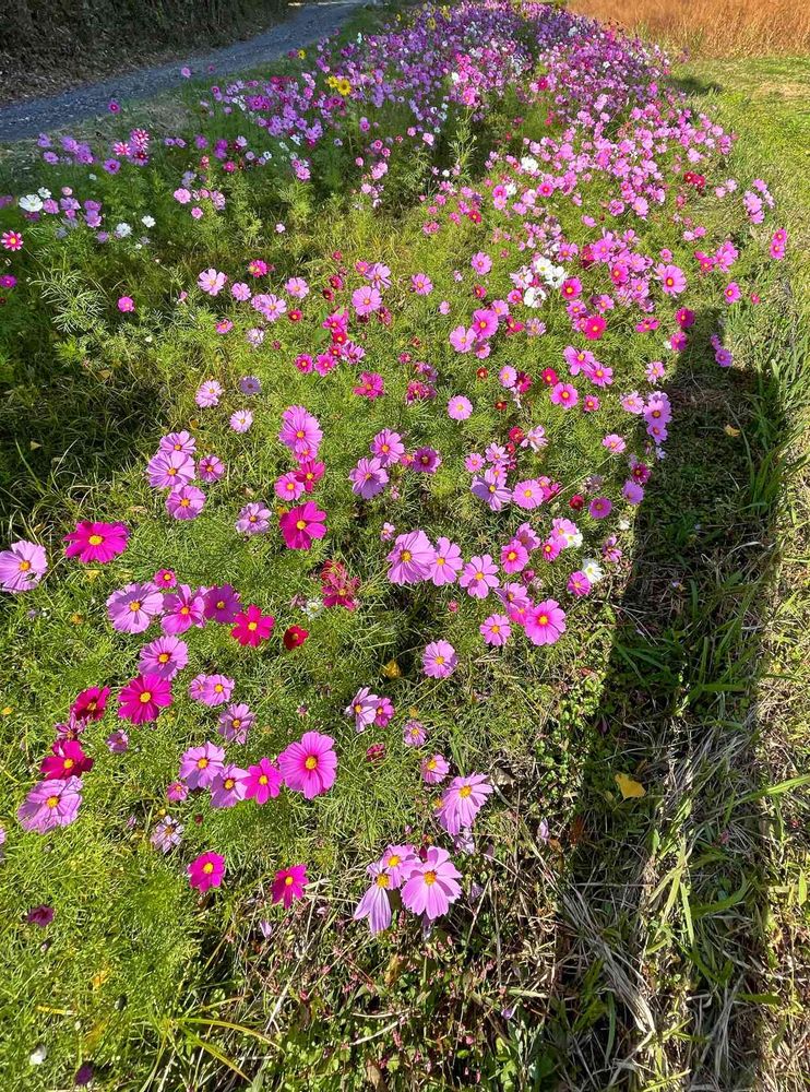 ♡この写真画像は、⛩船引神社の境内の直ぐそばにある駐車場の脇で、満開に咲いていた小さなコスモス畑の様子を撮影したものデス🐶