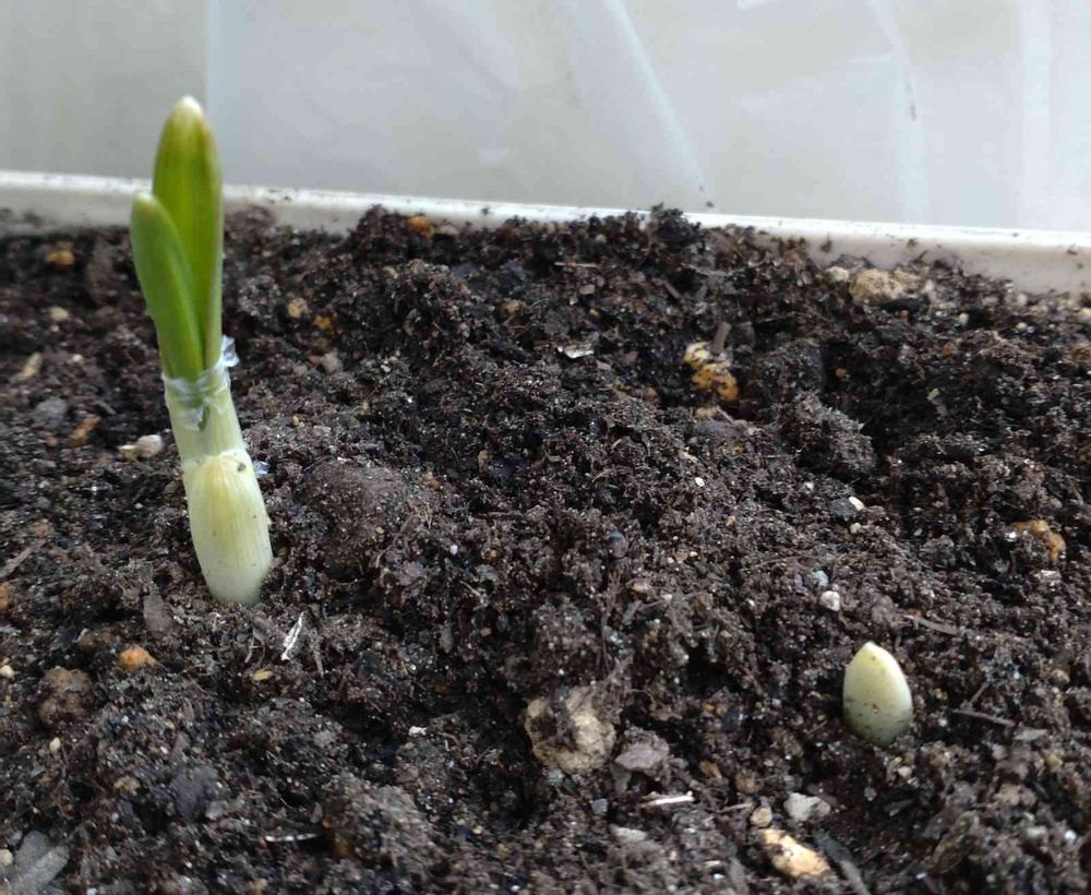 この右の芽がたまらん~~。にんにくなのに、可愛くて仕方がない!チビッコな時期は今だけ☺️