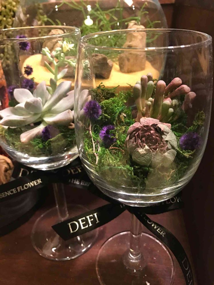 こちら好みが偏ると思いますが😅少し毒々しいけどワイングラスで簡単テラリウム🌿