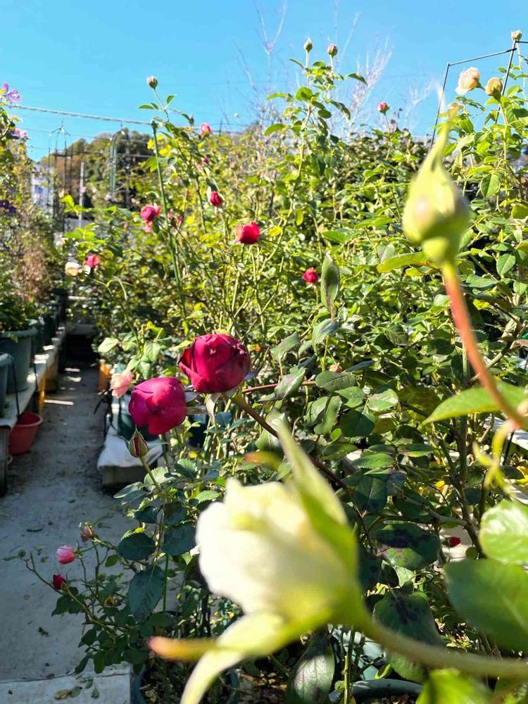 まだまだ蕾がいっぱいの車庫の屋上です。今週は寒くなりそうなので、どのくらいで開くかしらん❓