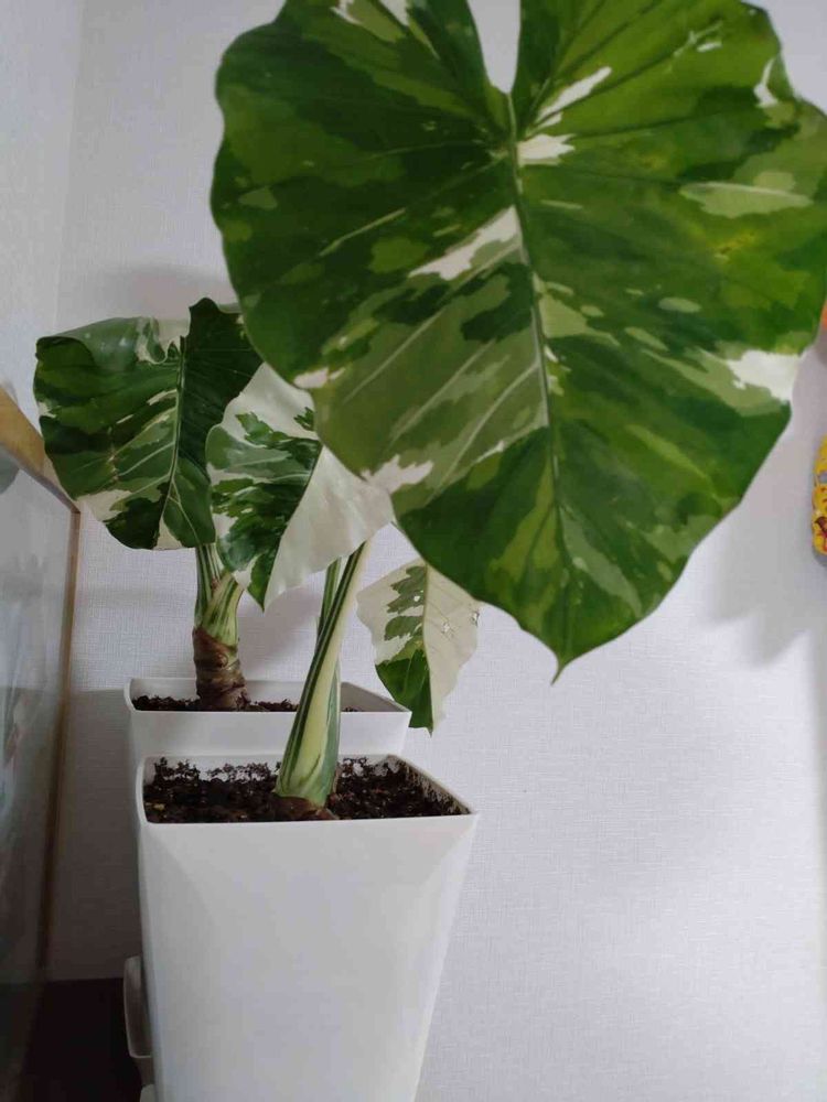 憧れの斑入りのクワズイモ!ようやく購入出来ました(*^^*)かなり大きい株を買えたので嬉しいです♪小さい物も2つあるのですが、やっぱり大きいと迫力ありますね(*‘ω‘ *)成長が楽しみです!