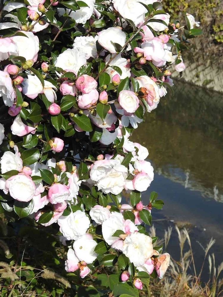 小さな木🌲いっぱいに綺麗な花を付けた💮サザンカ💮