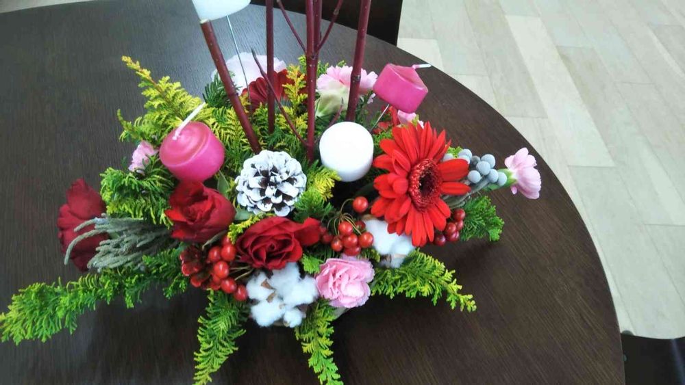 職場に花を,クリスマスアレンジメント,職場のいけばなの投稿画像