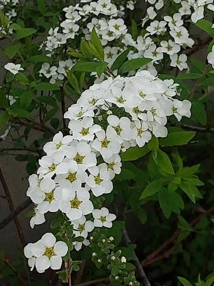 友人宅のブロック塀に沿って咲いているユキヤナギ🌿🌿🌿