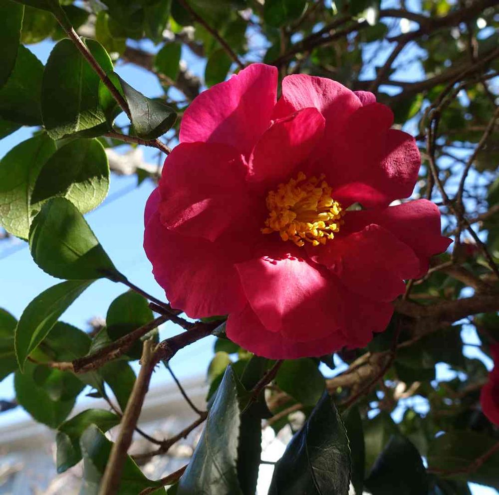都内としては緑の多いところですが数十年前はこのサザンカの葉の裏がタールで真っ黒でした。