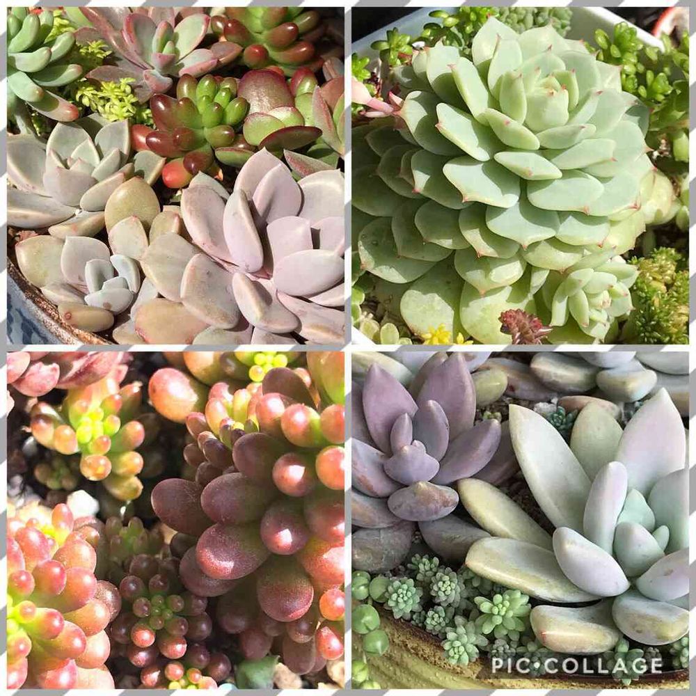 右上❣️ デレンベルギーさんの周りに、10種類のセダムさんがいます(゚∀゚)