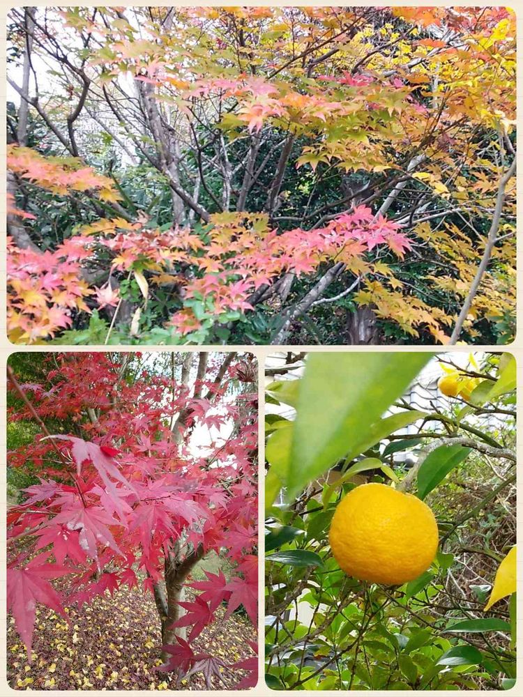モミジの赤と柚子の黄色、鮮やかです✨✨