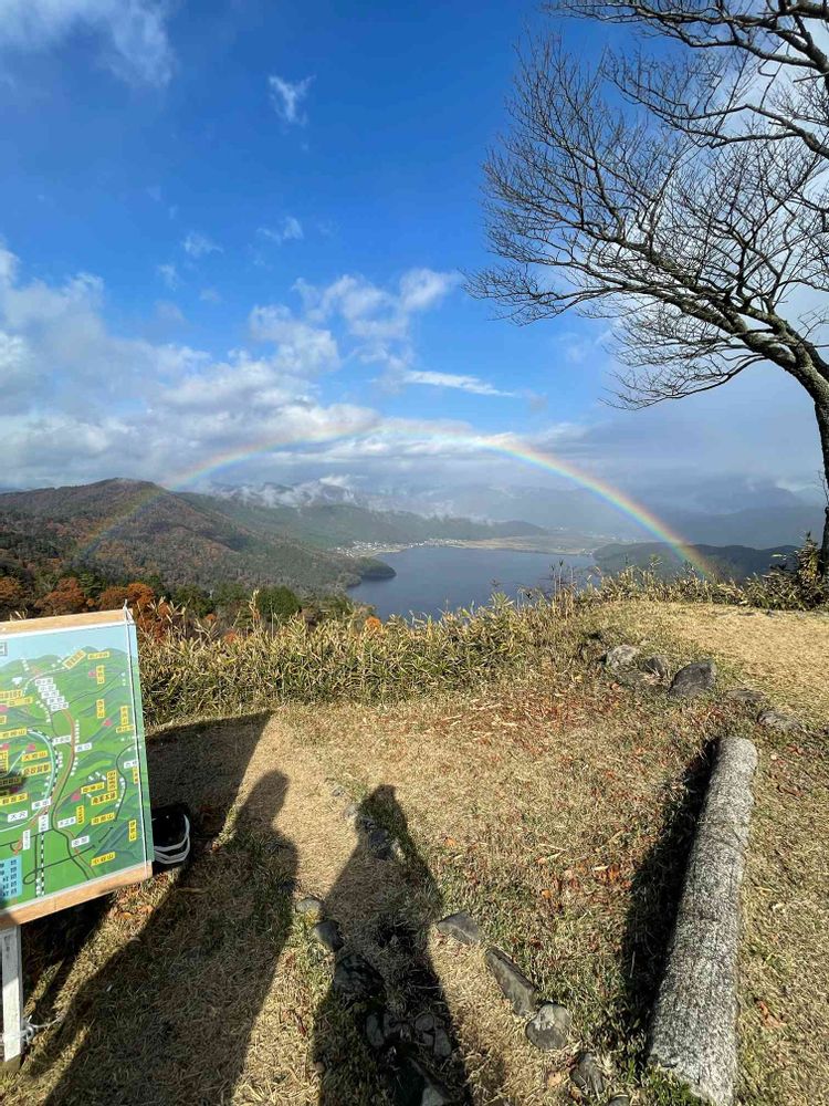 皆さまコメントありがとうございました🙇♀️😭😭😭虹で🌈幸せが訪れますように❣️旦那は隣の賤ヶ岳合戦陣の配置図看板を見ています😅ボランティアガイドさんもこんなキレイな虹は初めてですと言っていました❣️見下ろす虹は、圧巻でした‼️ミーシー夫婦はどの城跡も古戦場跡もぜーんぶ登攀いたしました。なかなかのトレーニングでございました😂紅葉🍁がキレイでしたので、みどりのまとめをしたいと思っております❣️