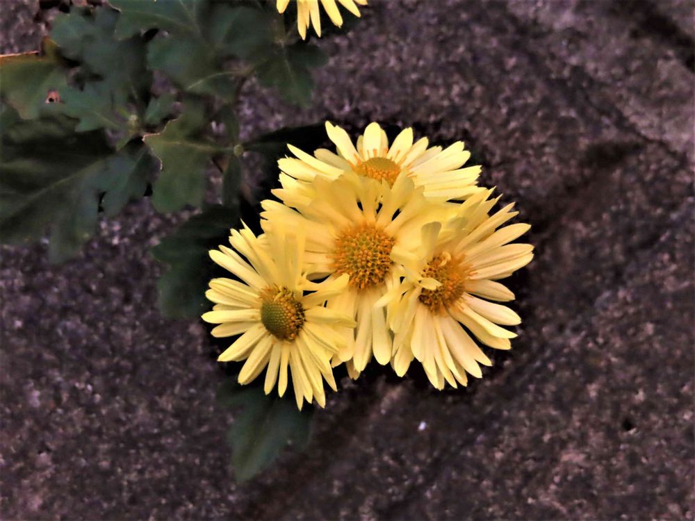 擁壁に垂れ下がった「キク」がとても綺麗でした。 パチリ