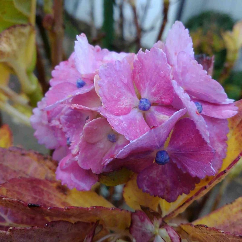 みぞれが落ちて来ましたよ〜😮💨またくら〜い冬到来ですね〜❣️アジサイさん夏越ししましたか?色もあせてなくてすごいですね〜🤭