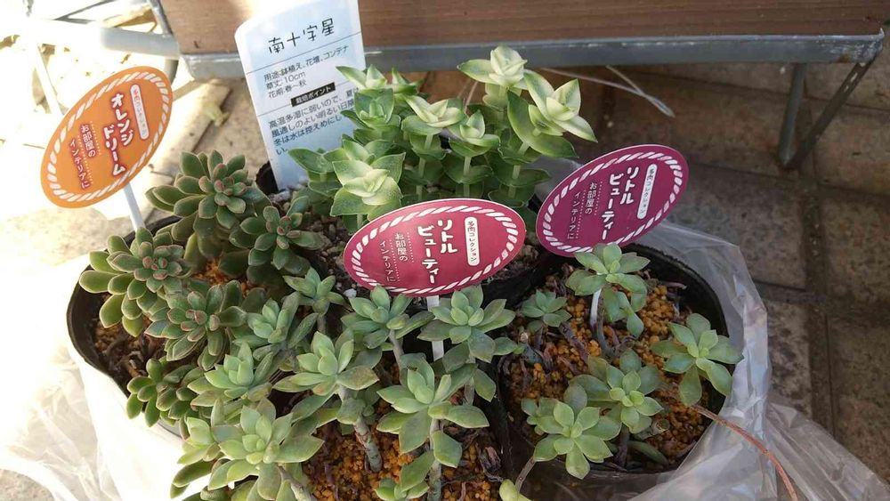手前の3つ、見切り品で50円。こんなに元気で可愛くなる子だから南十字星と共にお迎えしました。