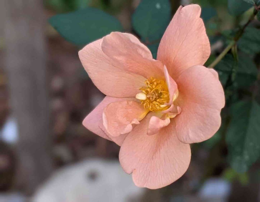 今朝、ドッグラン周りの花壇に中輪の薔薇が咲きました。柵を潜って、今クロちゃんが出て来ています。