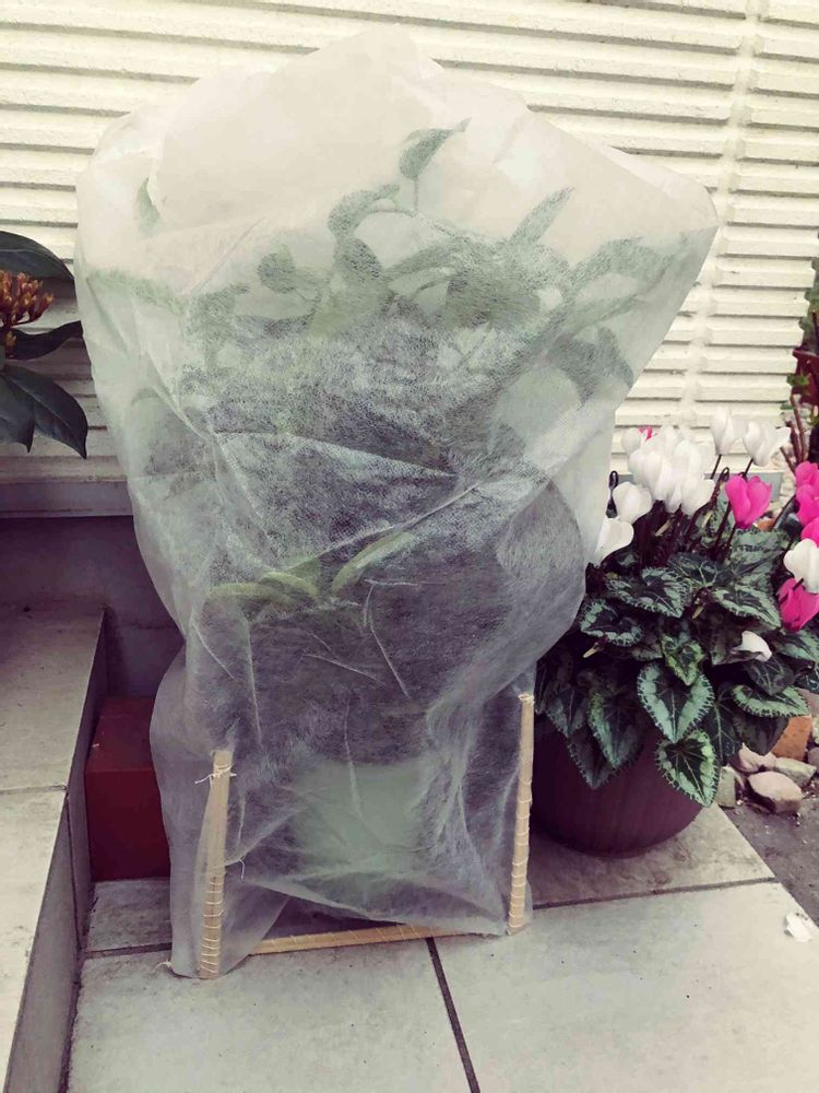 いきなり寒くなってきたし…不織布で手作りハウス作った笑