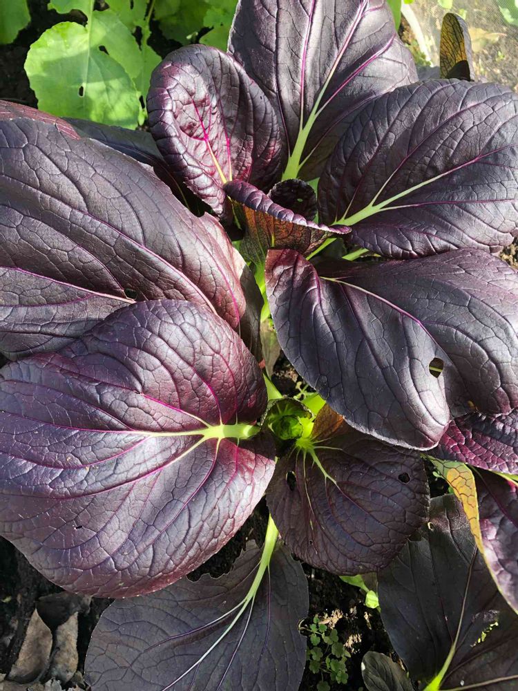 ヨトウムシとの戦いに負けなかった貴重な紫チンゲン菜😊