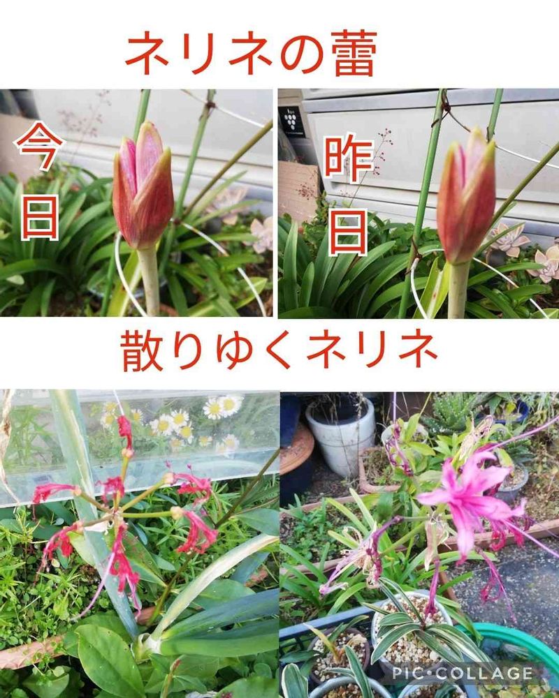夕方の庭 これから咲くネリネと 咲き終わるネリネ…
