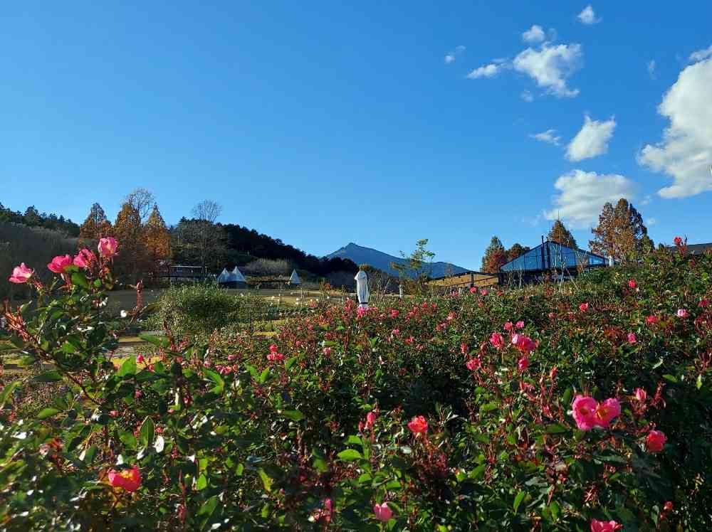 青空と山⛰️とバラ園🌹の秋景色🍂癒しの散歩コース🚶♀️🎶