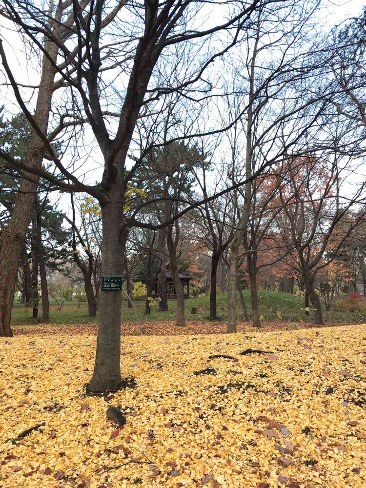 黄色い銀杏の絨毯💛に小豆梨アズキナシ