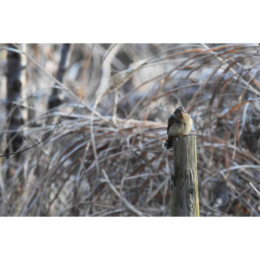 オジロビタキを撮り、その後葦原の湿地に来て見ると、何やら葦原に向けて写真を撮る人がいるのですが、カメラを向けた方向を探しても中々鳥さんが見つからず、やっと近くの杭の天辺に出て来てくれて撮れたアリスイさんです!!