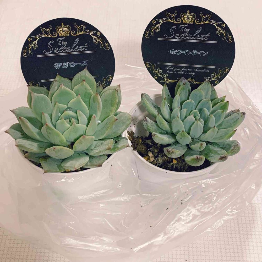 数日前、いつも食品を買いに行くスーパーに突然の王冠エケベリアトレーが!!しかも全部埋まってる、つまり誰も買ってないから選び放題。でもなんか土が少ない?ひっくり返した?という状態💦その中から持ってない2つを連れて帰りました。