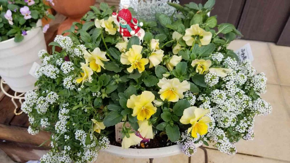 しげさんの玄関,フリル咲きパンジー シェルブリエ,トヨタガーデンオリジナルふわもこアリッサムの投稿画像
