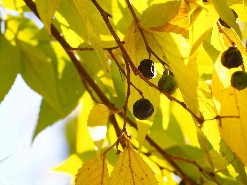 黄色と黄緑色が美しくて近寄ってみたら実も成っていました