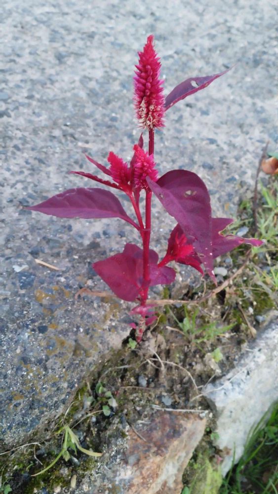 路傍の僅かな土でケイトウが花を咲かせてる