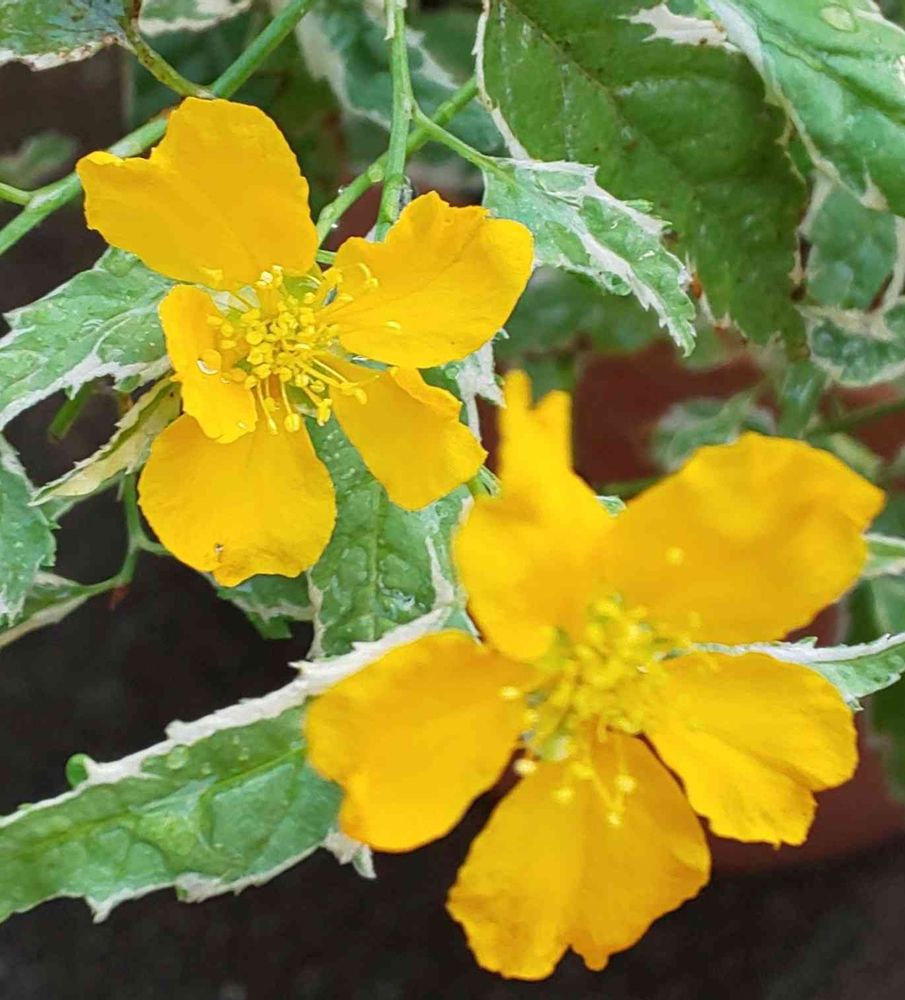斑入りのヤマブキ、8月に綺麗に咲きました✨