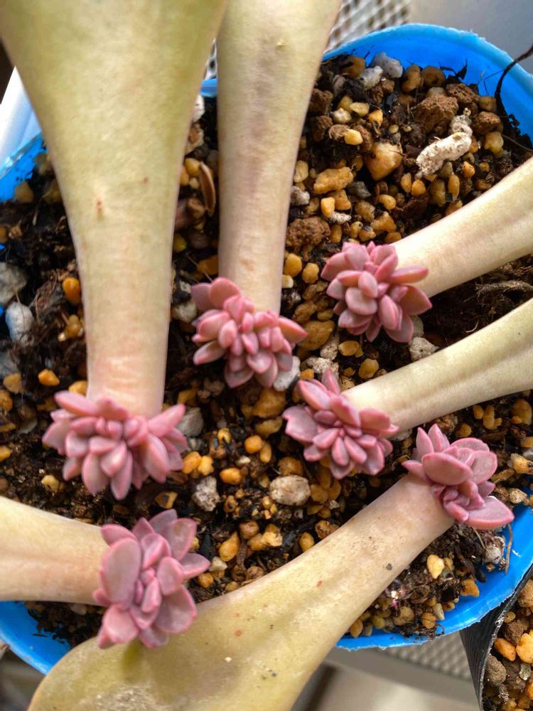 葉挿し、ここまで、いいんですが、我が家の場合、ここから、徒長して、ひょろひょろになるんですが、何が、問題なのでしょかねぇ😂