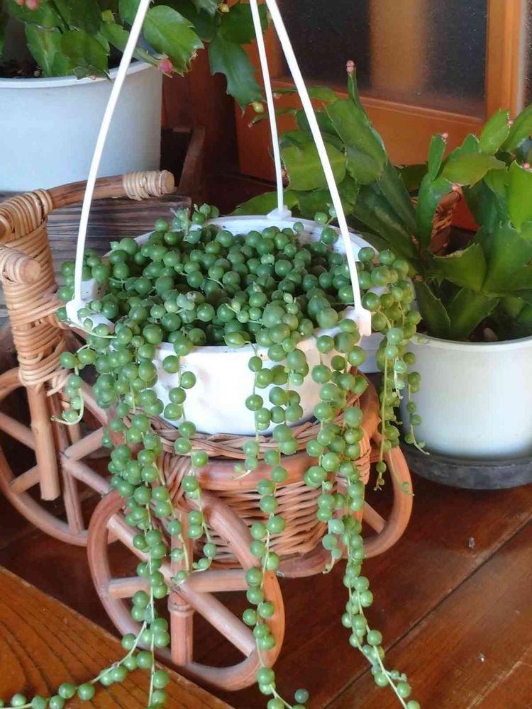 親株から切り離さなくても、土を入れた鉢を同じ高さに置いて、長く育った茎をぐるぐるして