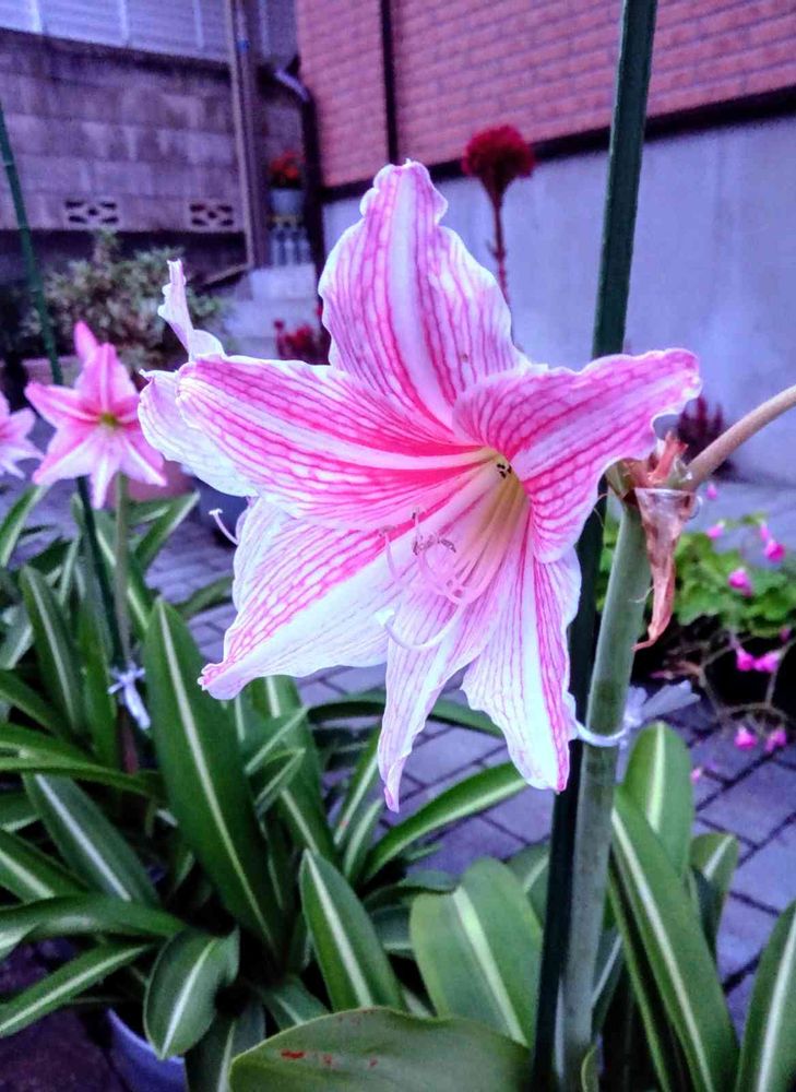 葉っぱの中央に白い線があってシロスジアマリリスと言います。