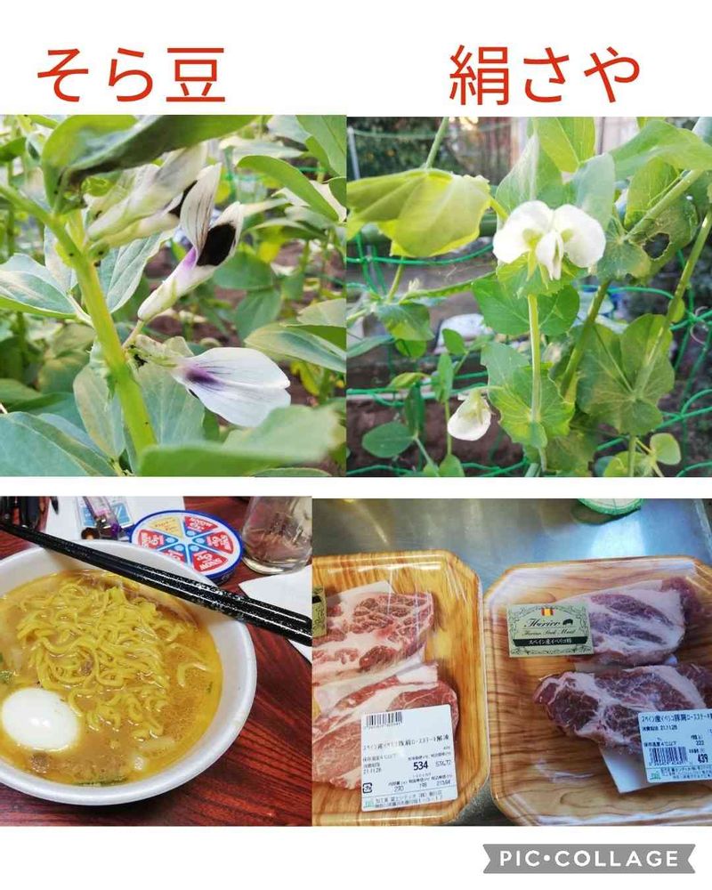 絹さや 少し収穫できたけど まだ収穫できそうです そら豆は 花は咲くけど実になるのは 難しそうです😥 お腹が空いたのでカップラーメン サッポロこく味噌のすみれ 2番目にお気に入り 一番は マルちゃん正麺の 芳醇こく醤油😁 炊飯器で 角煮を作ろうと思って買ってきた 肩ロース😚