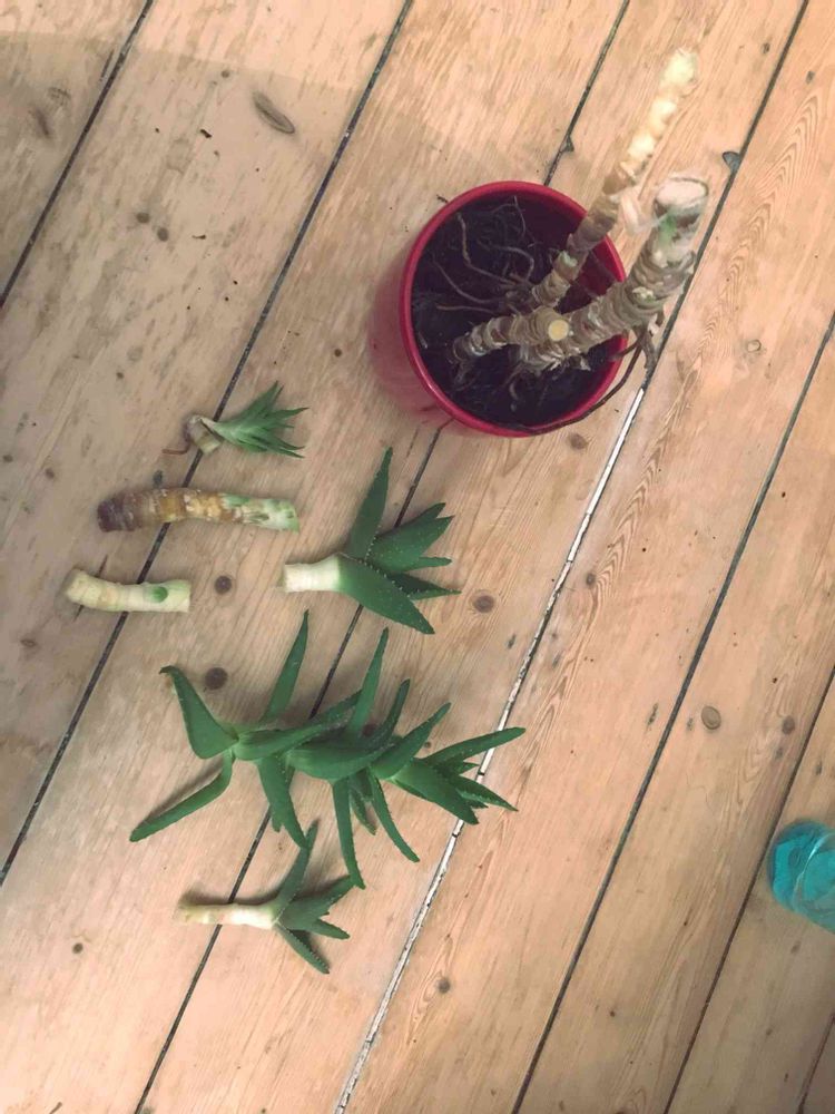 友人宅で5、6年放置されてたというアロエ(不夜城…かな?)を譲り受けて解体しました。4株と、茎から子株が伸びればもうちょっと増えるかな?育ったら誰かにおすそ分けしないと、場所がない!