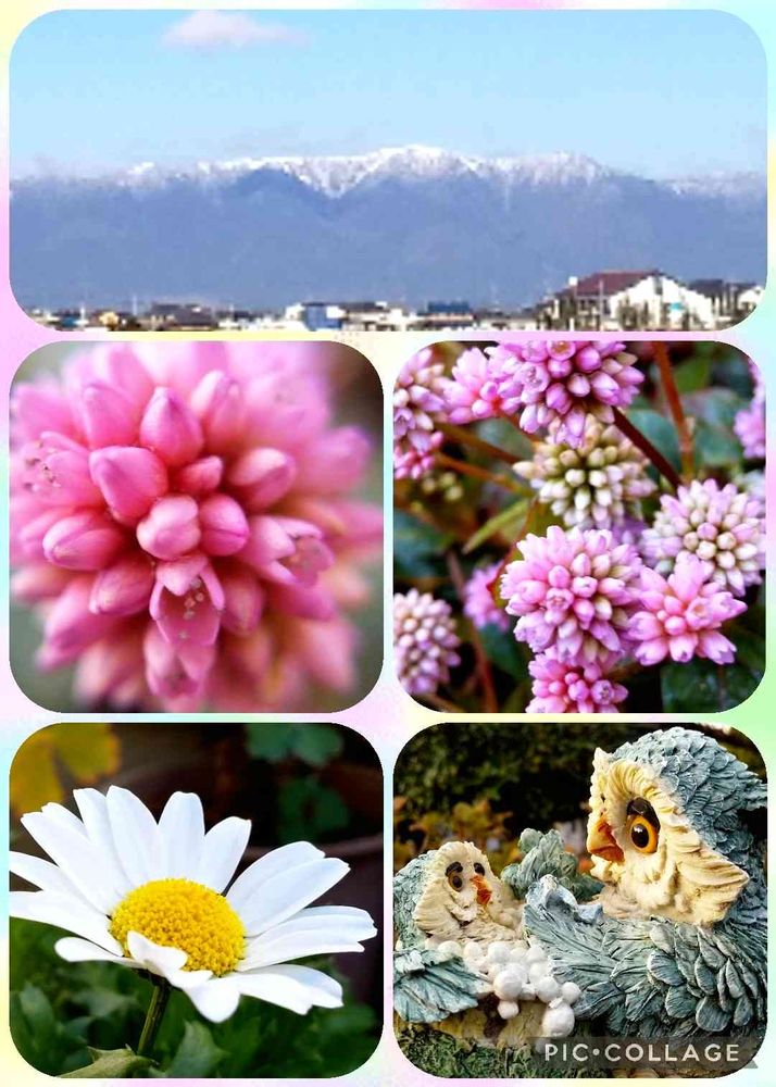 比良山系の雪とノースポールの白色、ポリゴナムのピンク色、フクロウ親子のグリーン。picの3色が纏まっていますね!🤗😄🌞👌