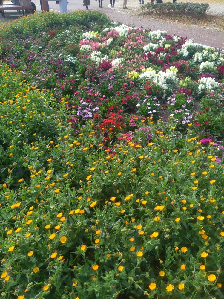 キンギョソウとナデシコは色ランダムに植えられてるけど、黄色のフユシラズ(かな?)との組み合わせで素敵にまとまってる~😆💕
