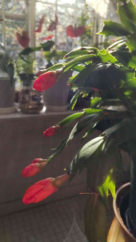 窓辺で日差しを浴びてるシャコバサボテン🌺