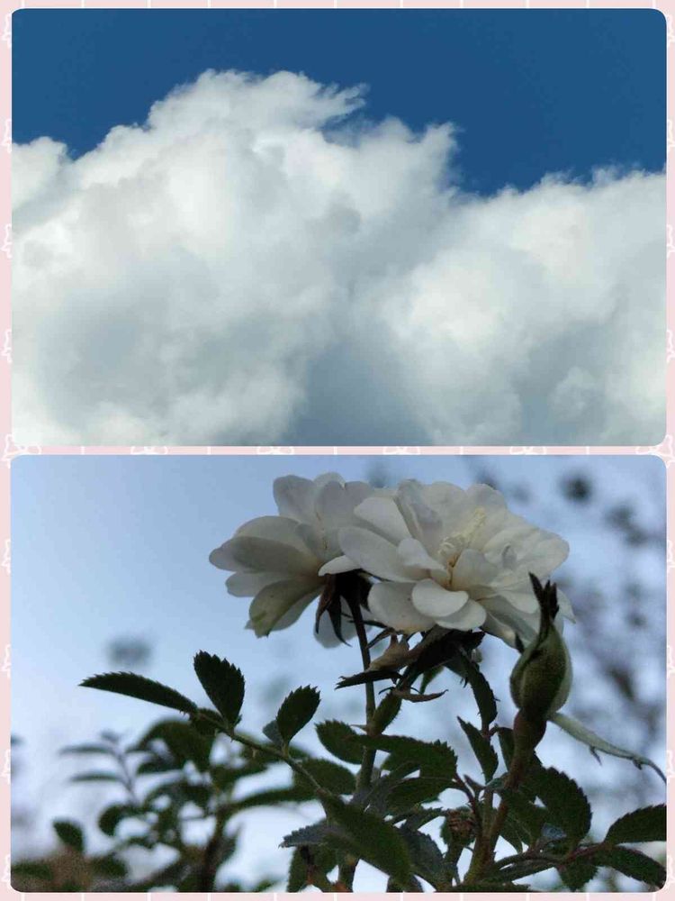 青空に白い雲と白い薔薇・*:.。🌸💗*。゚゚・*:.。 🌸💗*:.